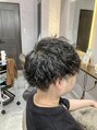 しっかりめのツイストスパイラルパーマ!!ノーセットでもかっこいい無造作スタイル^_^後ろの刈り上げをツーブロックにしているので重くなりすぎないのがポイントです!