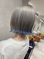 シルバーグレーアイスブルーエンドカラー切りっぱなしボブ/ホットペッパービューティー