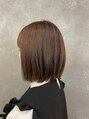 カットは顎下のフラットボブです。アウトラインを残しつつ毛量調整しました。カラーは、ベースが12トーンの状態から8トーンのシルバーアッシュをのせました。