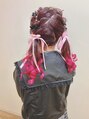 ライブヘア × ツインテール♪ 編み込みからのツインテールで ふわっと可愛さアップ!! パールやリボンを使って、可愛く華やかに** 裾カラーも最高に可愛い☆! 双子コーデにもオススメです◎