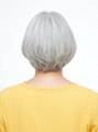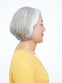 ぺたんとしがちなトップをカットでカバー。白髪を生かしつつ白髪が気にならない大人系のボブスタイル。スタイリングは乾かすだけで形になります。