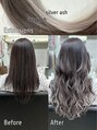 ブリーチ履歴を生かした、赤みのない透明感カラーにアッシュ系のエクステをつけました◎色落ちのこともふまえて、エクステをやや明るめに、グラデーション気味にすることで長持ち♪