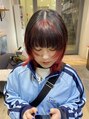 前髪デザインカラー赤髪に似合うパキッとした黒と合わせてカジュアルヘア