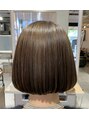外ハネにも内巻きにもどちらも楽しめる長さの切りっぱなしのボブにラテベージュカラーを入れて透明感を出しました!!くすみのないカラーリングですので肌馴染みも良く顔色が明るく見えるカラーリングになります!是非一度お試しください!