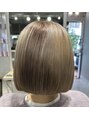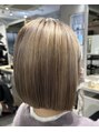 全体ブリーチを2回施した後に明るめのミルクティーグレージュカラーを入れました!!スタイルのベースは切りっぱなしボブでプツンと感を出してあります!自分に似合うブリーチカラーやボブがわからない方はぜひ一度ご相談下さい!