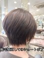 「大人かっこいいショートボブにしてください」とご指名を頂きました。ネットでわざわざ僕を探して来てくださいました。縮毛矯正、カット、カラーをさせて頂きました。今回のカットのこだわりは大人カッコいい!あまり丸くなりすぎず耳周りの透け感です。