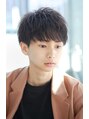 黒髪ツイストパーマアップバングツーブロック刈り上げスーツ