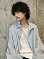 マッシュウルフに大きいカールのソフトツイストパーマで無造作な動きに、大きいカールをしっかりかけることでリッジ感を出して色気のあるスタイルに