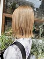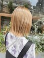 ハイトーン切りっぱなし外ハネパッツンボブ透明感カラーブリーチ/ホットペッパービューティー