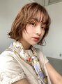 オレンジベージュカラーと顔まわりレイヤーボブ*