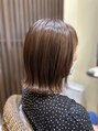 トレンドの外はねミディボブ柔らかい雰囲気を出す為にベリーショコラのカラーを。くびれがつきやすいように表面にだけグラデーションカットを施して簡単セットに。