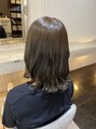 カラーは透け感があるアッシュにする為、オリーブやブルーを使ってます!赤味が嫌いな方にとてもオススメな色です☆イヤリングカラーはブリーチなしで最大限明るいベージュにしました!しっかりトリートメントもしてるのでサラサラです♪