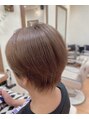 ベーシックなショートにミルクティーベージュのかわいいカラーでボーイッシュすぎない甘めショートです。