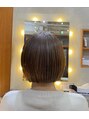 ボリュームがありワイドに広がるのがお悩みのお客様、髪質改善ストレートでコンパクトなショートボブにスタイルチェンジしました。施術時間も短くカラーも同時に出来るのでオススメです。