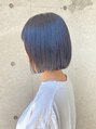 ダークグレー×ブルービビッドカラー/切りっぱなしボブ/熊本