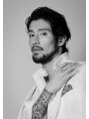 ダークなイタリア風クラシックスタイル。元々の癖や無精髭も利用して雰囲気が出せる様にブリットカット。色はダークカラーでマット気味に。
