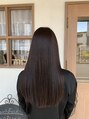 重たくなりがちな超ロングストレートヘアですがミルクティー色のイヤリングカラーで触れたくなるような高質感