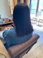 ポイント中の髪質がうねりが強い 髪質は硬く太いので乾かし辛い今回は硬さを柔らかく表現するために酸性縮毛矯正を使いしなやかでまっすぐなストレートをご提案させて頂きました。