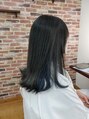 インナーだけブリーチして、表面はブルーブラックで。インナーも色もちがいいように、ブルーをしっかりめにいれました。ちらっと見えるのがかわいいです。