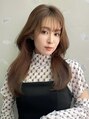 顔の輪郭はよりキレイに見えるようにひし形シルエットの似あわせカットをしています☆前髪は大人かわいいを表現するために、シースルーバングに。肌色がキレイに見えるチョコレートカラーで髪の柔らかさと透明感をプラス。プラチナカラーで、髪質改善。