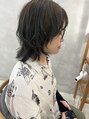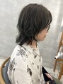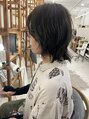 毛先にデザインカラーをいれたウルフスタイル毛先にグリーンの入ったカーキカラーは、全体をグリーン系で統一し、濃いめのグリーンで動きをだしました