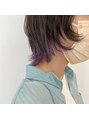 ウルフカットにインナーカラーを組み合わせたヘアスタイルです。インナーのブリーチは2回している状態で、紫をオンカラーしました