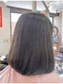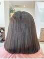 鎖骨ラインのミディアムボブ。縮毛矯正ストレートで全体を整え、ふんわり内巻きの仕上がりに。広がりやうねりがおさまり、サラツヤでなめらかな手触りに。