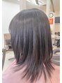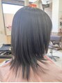 鎖骨ラインのミディアムレイヤーストレート。かんたんストレートで広がりやうねりを和らげ、おさまり良く。トリートメント効果のある薬剤でサラツヤな質感に。