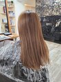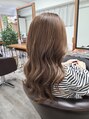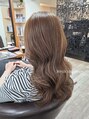 カラー前の明るめのベーストーンを利用して、ワンカラーのミルクティー系ベージュをオン。ハイトーンは巻き髪が映えるのでおすすめです◎