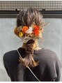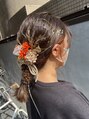 くるりんぱやロープ編みを使ってゆるふわに編んで、アレンジを華やかに☆オレンジのインナーカラーが飾りと合っていてより可愛いです♪ 卒業式や成人式におすすめのスタイルです!飾りはお持ちください!