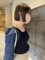 切りっぱなしのコンパクトボブ。ぷつっとしたライン感が可愛く耳にかけてもかけなくてもかわいいフォルムです!色は赤みを消したグレージュに!ブリーチなしでできるモテカラーです!柔らかい色味がこれからの季節にぴったりです!是非お任せ下さい!