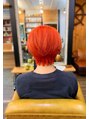 派手髪はお任せください!ショートマッシュのハイトーンでブラッドオレンジに♪濁りのないビビットなオレンジで人目を惹くこと間違いなし!!根本が伸びてきてもショートだと束感を作って立体感になるのもポイントです♪♪