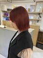 暖色カラー×外ハネボブ×切りっぱなし×前下がり×縮毛矯正