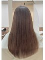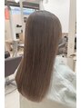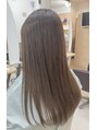 鎖骨下30cmのロングストレート。11トーン・フォギーベージュでは赤みを抑えたくすみカラーに。アメージングトリートメントを同時施術で、なめらかな手触りに。