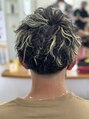 ツイストスパイラルの波打ちの方を重視してフェードに仕上げました。より立体感をお客様が自分でも出せる様にホワイトハイライトを施しました。