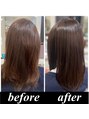 従来の縮毛矯正とは全く異なり髪を弱酸性のままストレートに髪質改善する最新の縮毛矯正です。独自の研究によるサプリメントケアで髪の間充物質を補いながらかけるため固くならず柔らかいシルクのような手触りになります☆
