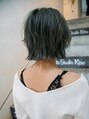 切りっぱなしのショートスタイル!寒色系のハイトーンカラーでスタイリッシュなデザインです。襟足の外ハネが今っぽいデザインになっています。前髪は分けるとクールに、下ろすと可愛らしさの出るスタイルになります![新小岩駅/新小岩]
