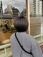 透けるような透明感のミルクティーグレージュ。こちらはカラー剤でダブルカラーをしています。ブリーチよりも傷まず、ワンカラーよりも圧倒的に透明感がでるので、現状の髪色が暗めの方、いつもオレンジになってしまう方はこちらがおススメです♪