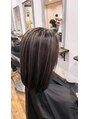 ハイライト/コントラストハイライト/ストレートヘア/ベージュカラー/セミロング/ブリーチカラー/デザインカラー