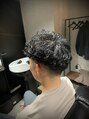 サイドは自然なフェードで爽やかに。上は長さを少し残して強めのプードルパーマにして遊び心を。セットはグリースで揉み込んでツヤっと大人っぽく。