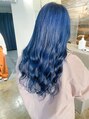 ハイトーンブルーカラー/ネイビーカラー/ロング/ケアブリーチ
