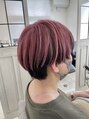 表面をケアブリーチで1度明るくした後オンカラーでピンクを入れました♪ベースはダークピンクブラウンでコントラストをつけたブリーチデザインカラーです☆