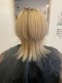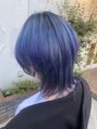 ブルーからパープルへと3種類変化のグラデーションカラーとなっております。カットはネオウルフ系でおしゃれに仕上げました*