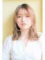ミディアムレイヤースタイル、顔周りは、リップライン、顎ラインもみあげと三段階にしてレイヤーをいれる事により小顔見えや動きのあるスタイルになります