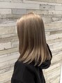 透けるような透明感のミルクティーグレージュ。こちらはカラー剤でダブルカラーをしています。ブリーチよりも傷まず、ワンカラーよりも圧倒的に透明感がでるので、現状の髪色が暗めの方、いつもオレンジになってしまう方はこちらがおススメです♪