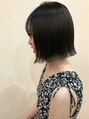 顎が隠れるラインでぷつっとカットしたボブ。ブラント感を残しつつ最小減まで毛量を抑えてカット。