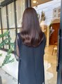 巻いた時にふんわり動きが出やすくレイヤーを入れたミディアムロングヘア。カラーは9レベルのほんのりパープル色が可愛いパープルグレージュカラー!