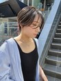 大人かわいい前下りのハンサムショート、大人ショートボブはシャープに切った毛先のライン、襟足をしめスッキリ見せたり、メリハリを効かせ絶妙なバランス!ブリーチ後暗めグレーベージュにし透け感を。メンズライクなスタイル楽しみませんか?