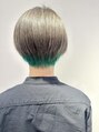 ツーブロックの入ったショートカットをベースに上はシルバー、インナーはグリーンを入れさせていただきました!ツーブロックもブリーチして色を入れています☆