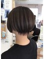 カラーは新色イルミナカラービーチ明るめで、柔らかさと透明感を出してあります。量が多く硬い毛質なので、重く見えやすい所は切り込んであります。耳周り後頭部はしっかり毛量調整し、頭の丸みにキレイに沿う様にカットしてあります。